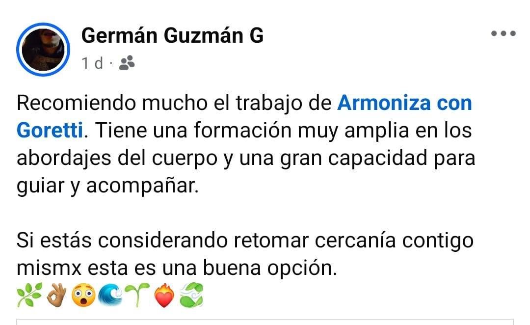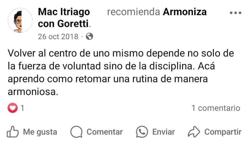 Las clases de armoniza no buscan sólo fortalecer o hacer más flexible el cuerpo (eso será una consecuencia). Las prácticas de movimiento de Goretti buscan generar un espacio para transformar el estado de estrés, agitación o ansiedad a uno de más calma, introspección y gozo. Después de hacer las clases te sentirás con energía renovada para continuar con mejor actitud tus días.